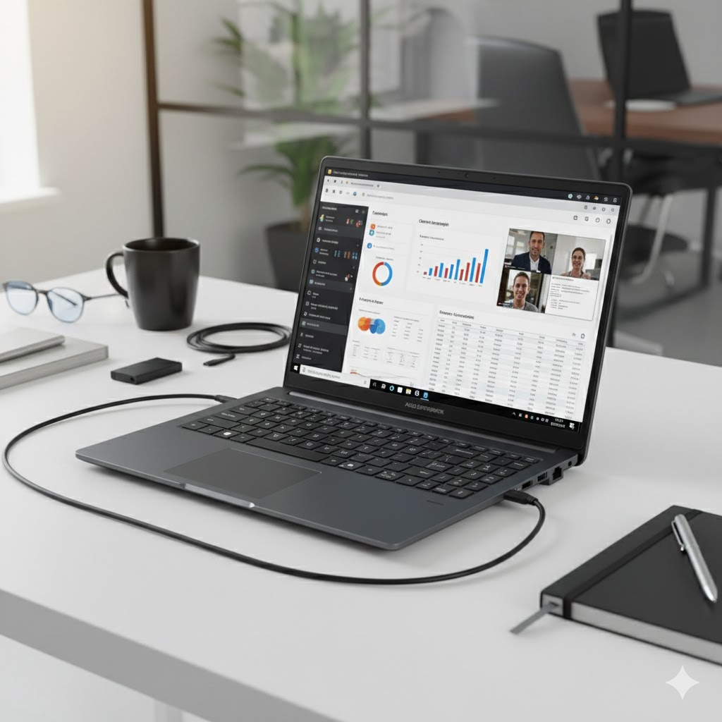 O ASUS ExpertBook B1503 é projetado para o ambiente de negócios e uso acadêmico intensivo. Ele combina um processador Intel de 13ª geração com certificação de resistência militar MIL-STD 810H, garantindo que o hardware suporte vibrações, quedas leves e variações de temperatura.